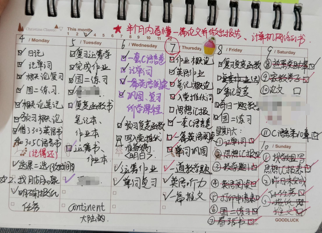 大学里我最喜欢做的一件事情就是计划,每日计划、每周计划都被我写得满满的。现在回头看,感觉自己大学四年的每一天都很充实。
